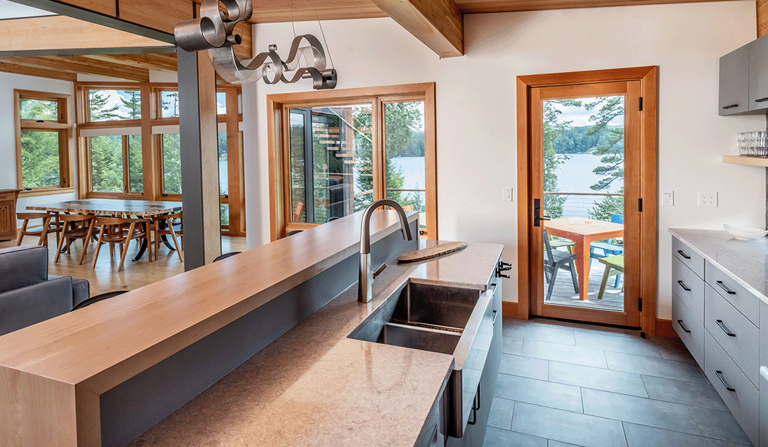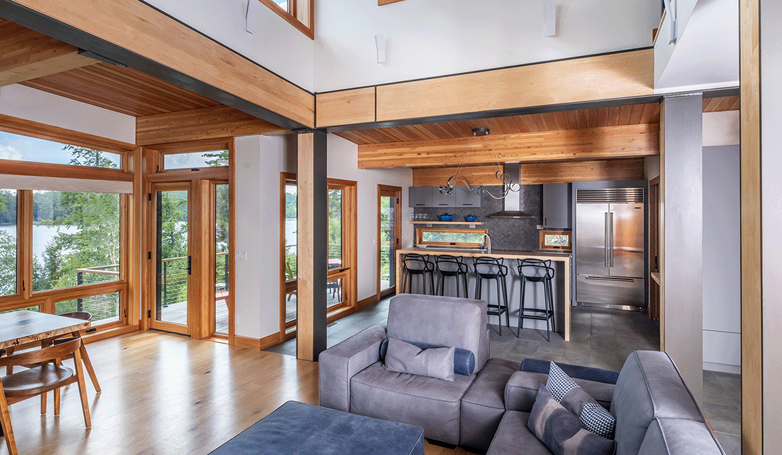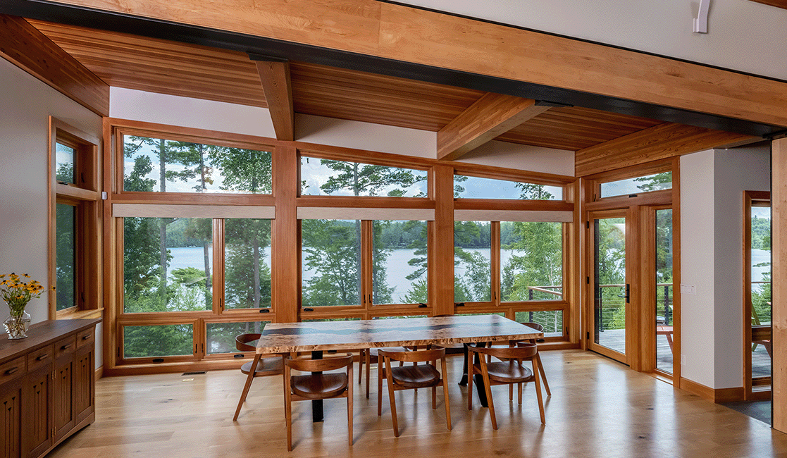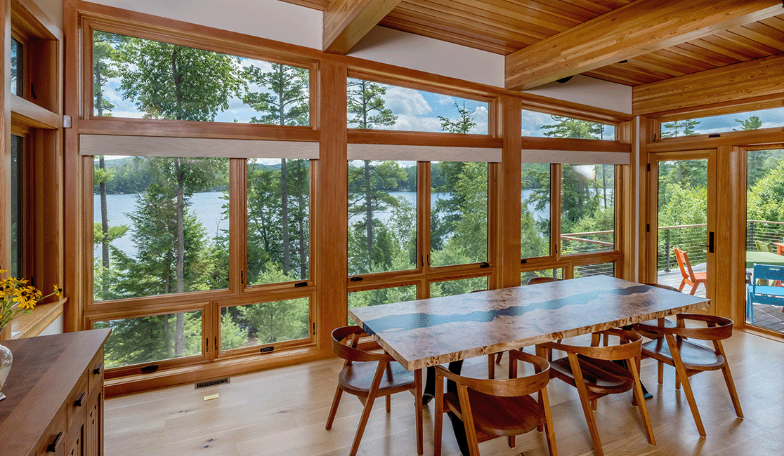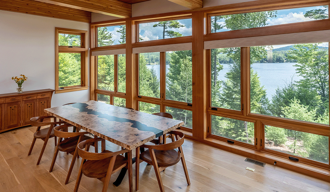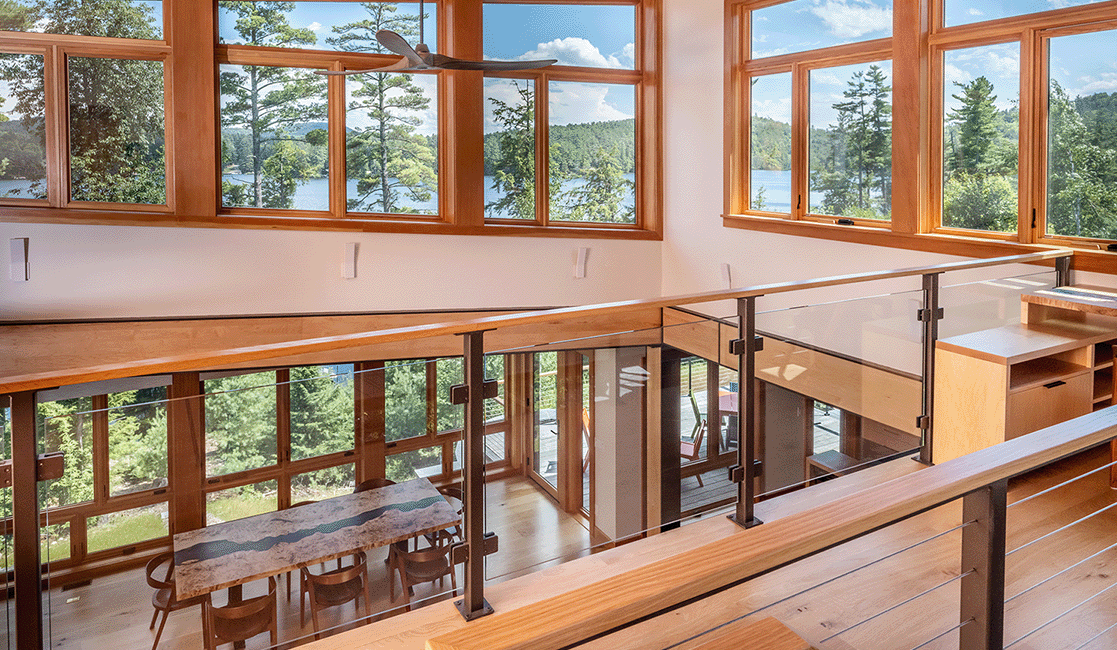 Nestled in the Adirondack region, this eco-friendly residence harmoniously blends with its natural setting through a fusion of contemporary and traditional wooden architecture. By embracing local materials and advanced energy-efficient features such as superior insulation, high-performance windows, and solar panels, this home achieves near-off-grid living with zero reliance on fossil fuels.